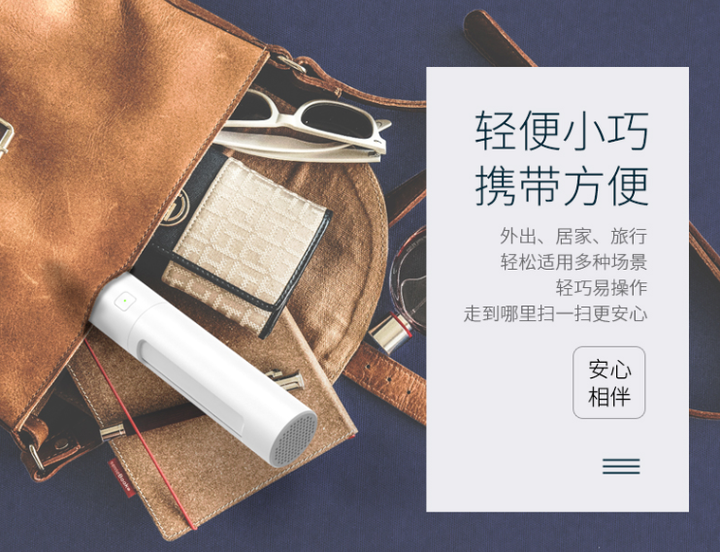 市面上关于紫外线灯的产品也非常多,如果要考虑方便携带的话可以选择体积小巧的便携式紫外线灯,喵创智品人宠两用多功能手持式紫外线消毒杀菌设备就很有优势,采用的是UV-短波紫外线灯杀菌照射技术,杀菌率高达到99.9%!还具备两种智能模式:可以既作为紫外线灯消毒杀菌,平时还能自动开启空气净化功能!不得不说,便携式的紫外线灯应用程度非常高,就连手机、口罩、鼠标、键盘、钥匙这些日常使用率超高的小部件,可以将小物品放入包里,打开紫外线灯,拉上拉链,密闭杀毒,方便又省心。手持魔灯进入客厅,厨房,浴室等多种场所时,消杀后打开空气净化模式,清新家中空气!