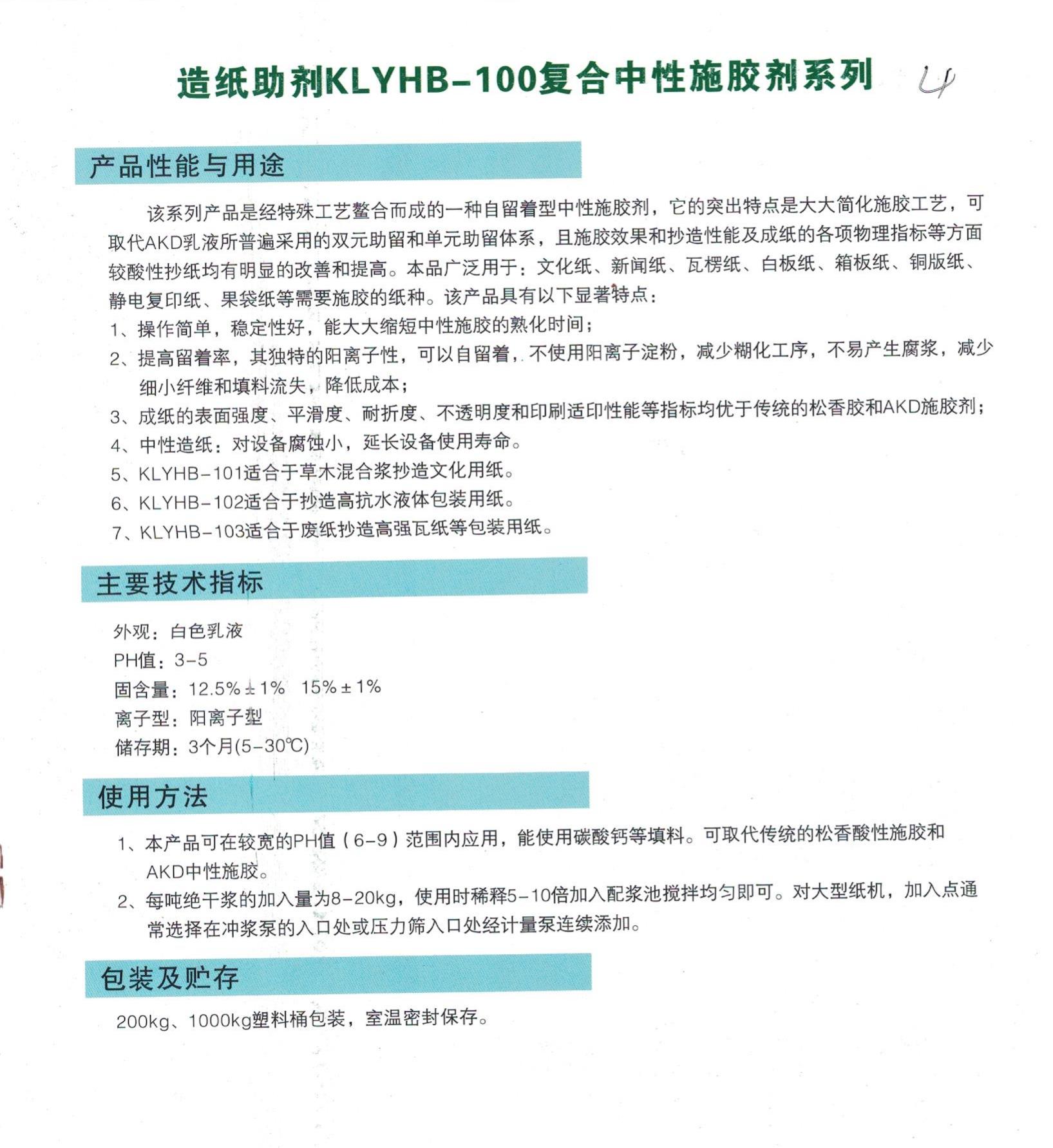 造纸助剂KLYHB-100复合中性施胶剂系列